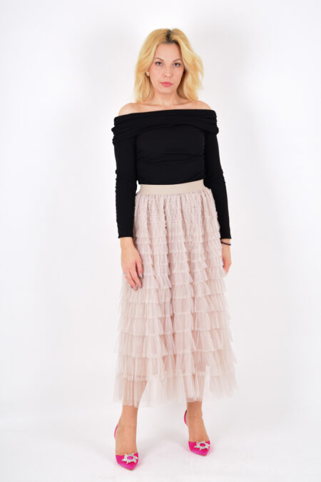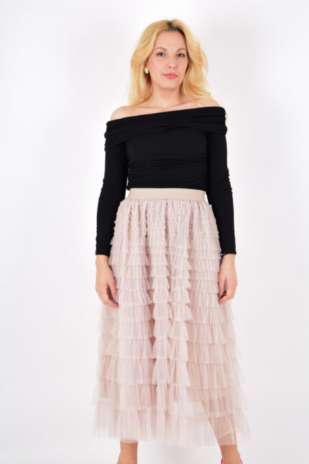 Φούστα τούλινη με βολάν μπεζ – Mia
