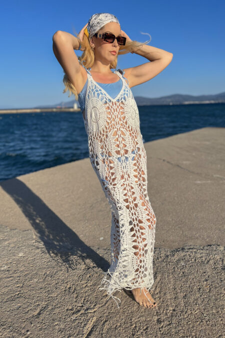 Γυναικεία ψάθινη τσάντα θαλάσσης. Είναι κατασκευασμένη από γνήσια πλεκτή ψάθα η οποία εσωτερικά είναι φοδραρισμένη και εξωτερικά διακοσμημένη με πλεκτό σχέδιο και κρόσσια. Κλείνει με φερμουάρ και διαθέτει και μία εσωτερική μικρή θήκη με φερμουάρ.