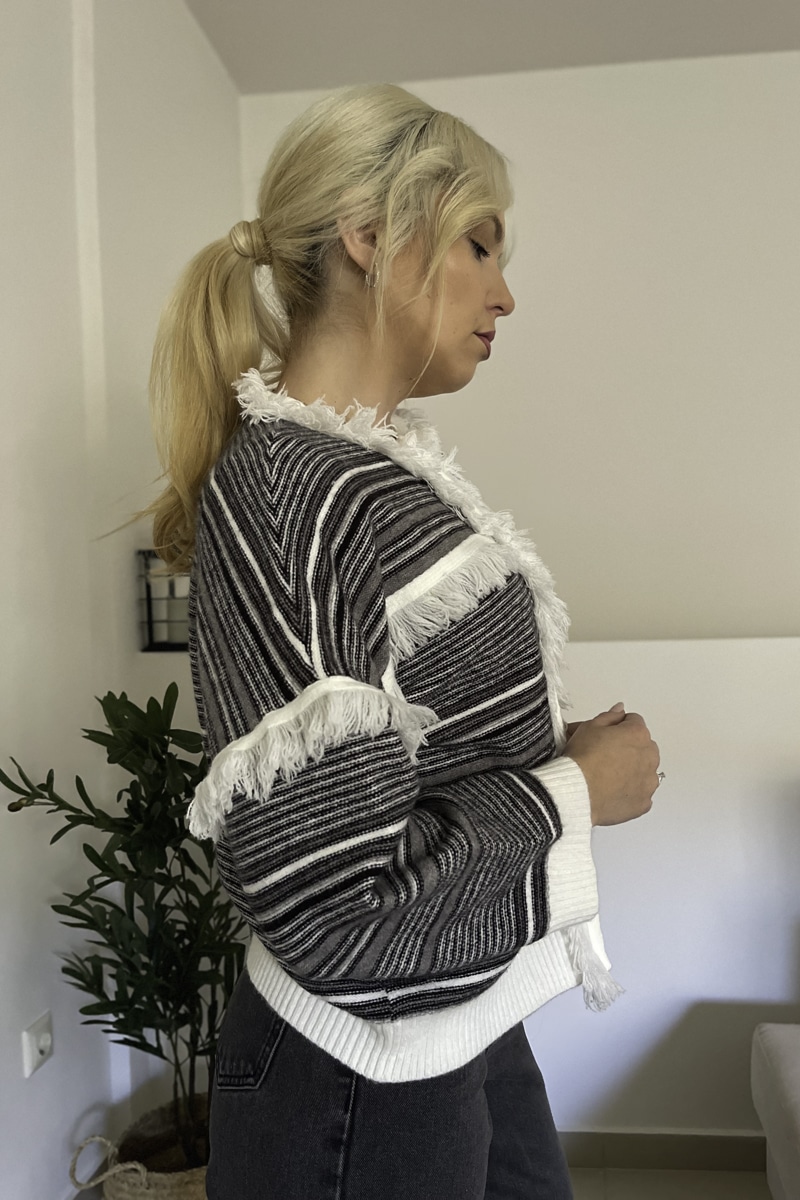 Ζακέτα με διχρωμία και κρόσσια λευκό – Ayla