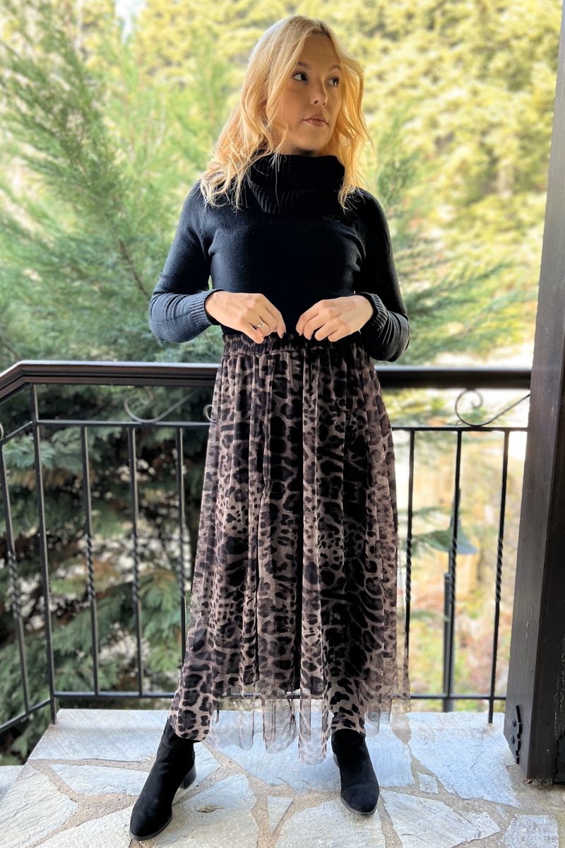 Μίντι φούστα με τούλι λεοπάρ καφέ – Ezra