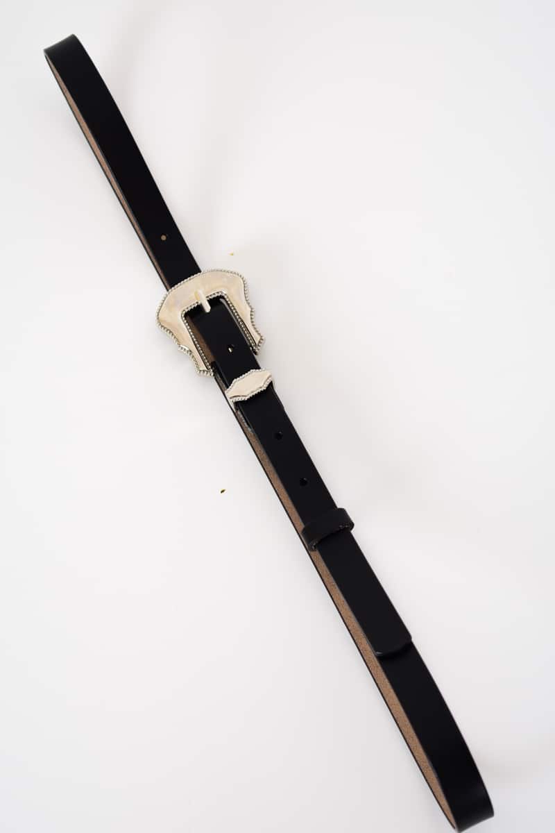Δερμάτινη ζώνη με μεταλλική αγκράφα μαύρη – Elan